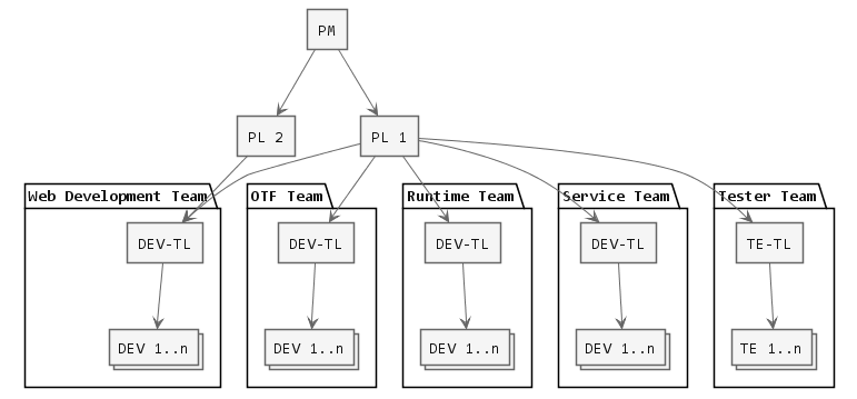 The following section provides an overview of the organizational structure for the development of the Open Test System Tool Chain as well as the assignment of the respective roles.
