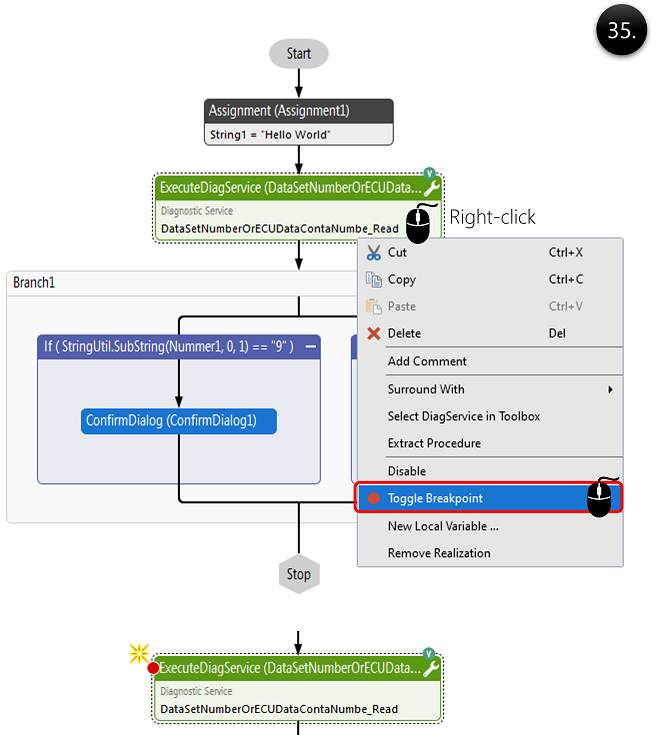 Add debug breakpoint at the ExecuteDiagService